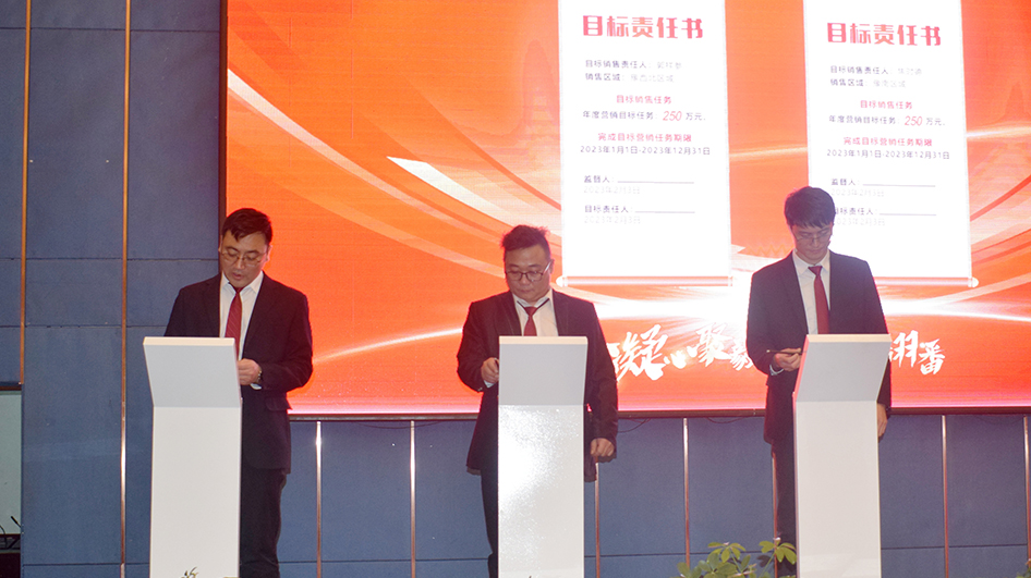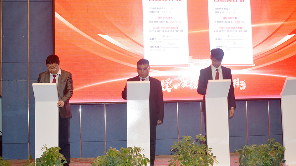 為確保金泰毅農2023年銷量目標達成,會上,金泰毅農各大區經理及區域經理分別簽署了2023年銷量目標責任書,實現“人人肩上有擔子,個個身上有指標”,護航金泰毅農2023年銷量“翻番”目標實現。會議還為金泰毅農2022年度優秀個人和優秀團隊進行了表彰,勉勵大家珍惜榮譽,在新的一年裏保持奮進姿態,共促金泰毅農事業再上新台階、實現新成就。